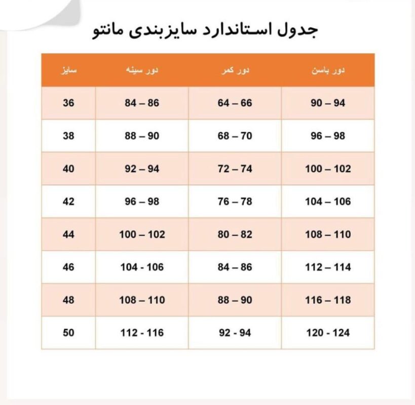 اندازه ها ،اندازه های به طور کیپ اندام شماست و لباس ها ۵-۷ سانت نسبت به اندازه دور سینه شما آزادی استاندارد و لازم رو دارند